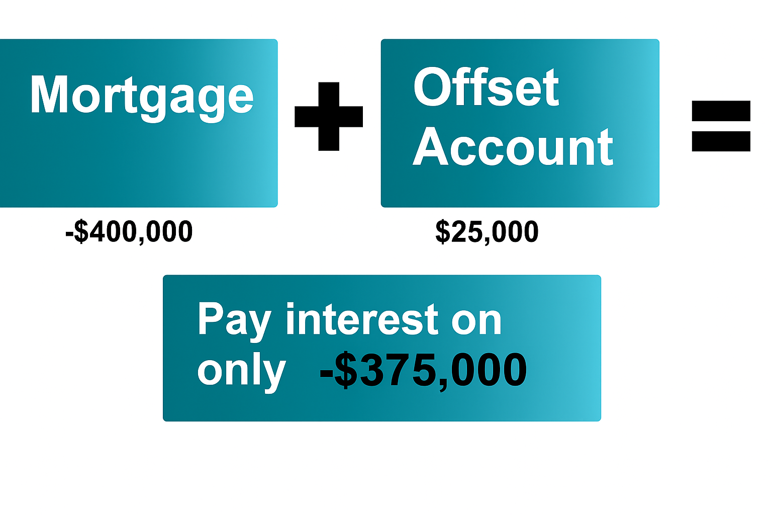 Let’s say you have a $400,000 mortgage at 4.95% and keep $25,000 in your offset account. You’re not paying interest on $400,000, you’re only paying on $375,000. That simple move saves roughly $1,200 a year in interest without increasing your payments or locking up your cash.